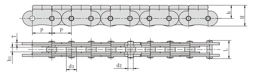 鏈號 節距 內節內寬 銷軸直徑 銷軸長度 鏈板尺寸 抗拉強度