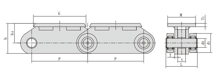 鏈號 節距 滾子直徑 銷軸直徑 銷軸長度 鏈板厚度 附件尺寸 抗拉強度