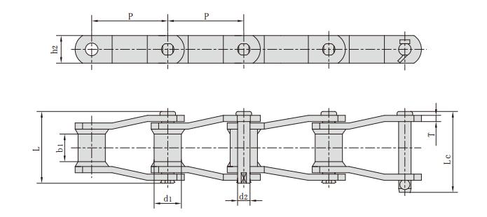 鏈條型號 節距 套筒直徑 內節內寬 銷軸直徑 銷軸長度 鏈板高度 鏈板厚度 抗拉強度 平均抗拉強度 每米長重