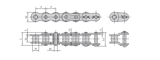 節距 滾子直徑 內節內寬 銷軸直徑 銷軸長度 內鏈板高度 鏈板厚度 抗拉強度 平均抗拉強度 每米長重