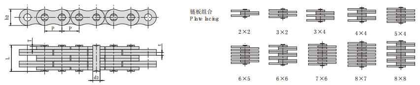 鏈號 節距 鏈板組合 鏈板高度 鏈板厚度 銷軸直徑 銷軸長度 抗拉強度 平均抗拉強度 每米重量