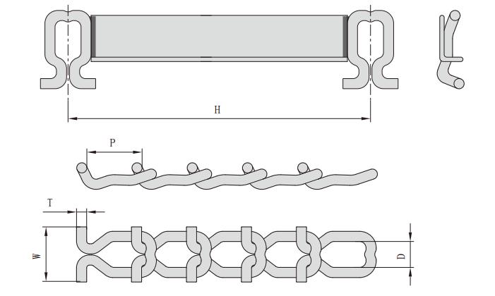 鏈號 節(jié)距 鏈節(jié)內(nèi)寬 鏈節(jié)全寬 鏈節(jié)厚度 鏈條中心厚度 平均抗拉強度