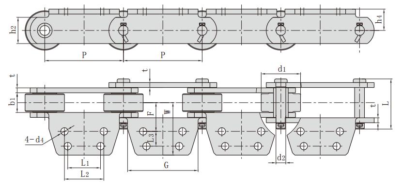 鏈條型號(hào) G F W h4 d4 L1 L2 L3