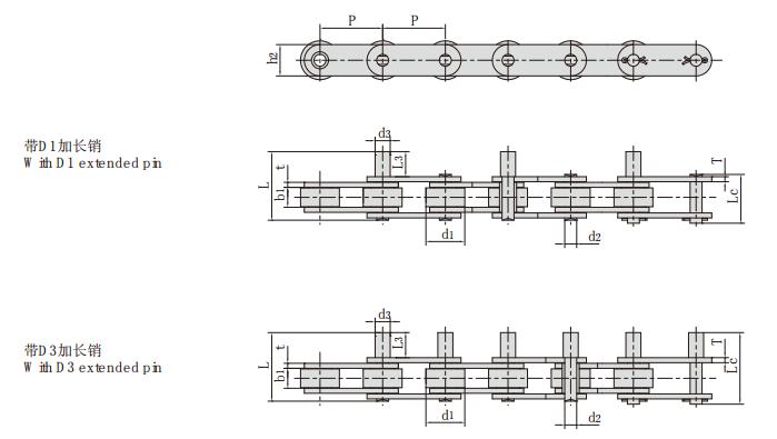 P20F6-D3_帶加長軸輸送鏈 輸送鏈條